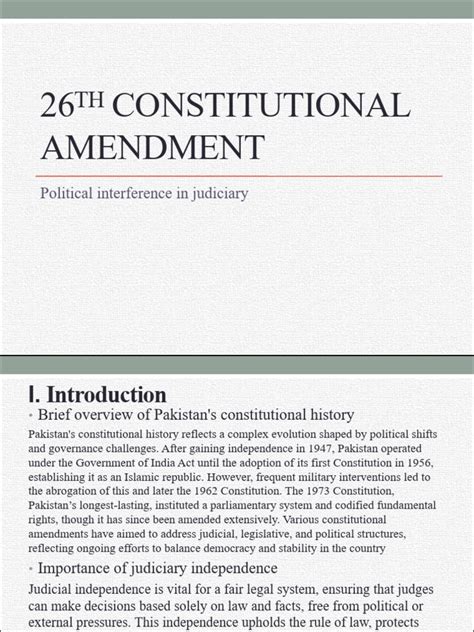 Now, let’s talk about the impact. How did this amendment actually change things? Did it make things better? Did it have any unintended consequences? This is where we look at the real-world effects of the 26th Amendment . The impact of the 26th Amendment can be assessed by examining its effects on various aspects of Pakistani society, including the political system, the legal framework, and the lives of ordinary citizens. A comprehensive analysis of its impact would consider both the intended and unintended consequences, as well as the short-term and long-term effects. One way to assess the impact of the 26th Amendment is to examine its effect on the distribution of power within the government. Did it strengthen or weaken the powers of the president, the parliament, or the judiciary? Did it alter the balance of power between the federal government and the provincial governments? Understanding these changes can shed light on the amendment’s impact on the overall structure of governance. Another important area to consider is the amendment’s impact on fundamental rights and freedoms. Did it expand or restrict the scope of these rights? Did it provide greater protection for vulnerable groups or minorities? Examining these effects can reveal the amendment’s impact on the overall quality of life for Pakistani citizens. The 26th Amendment may also have had a significant impact on the economy. Did it promote economic growth, create jobs, or reduce poverty? Did it lead to greater inequality or exacerbate existing economic problems? Analyzing these effects can provide insights into the amendment’s impact on the overall prosperity of the nation. In addition to its direct effects, the 26th Amendment may also have had indirect or ripple effects on other areas of society. For example, it may have influenced public opinion, shaped political discourse, or inspired social movements. Understanding these broader effects can provide a more complete picture of the amendment’s overall impact.