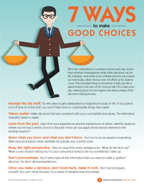 Guys, it’s super easy to get caught up in the immediate satisfaction of making a choice. But the smartest decision-makers always consider the long-term impact. What happens after you’ve made your pick? Will this choice create future problems, or will it set you up for success down the line? This involves thinking beyond the initial purchase price or the immediate convenience. For example, choosing a cheap, low-quality appliance might save you money upfront, but if it breaks down frequently and requires costly repairs, it ends up being more expensive and frustrating in the long run. Similarly, picking a job that offers a slightly higher salary but has a toxic work environment might seem appealing initially, but it could lead to burnout, stress, and damage your career progression. Think about sustainability . Is this choice environmentally friendly? Is it financially sustainable? Will it require ongoing effort or maintenance that you’re prepared to commit to? Consider the opportunity cost – what are you giving up by choosing this particular option? Perhaps by choosing one hobby, you’re foregoing the chance to explore another that might bring you even more fulfillment. Future-proofing your decisions is key. Try to anticipate potential future needs or changes in your circumstances. Will this choice still be relevant and useful in a year, or five years? For example, when buying a car, consider not just your current commute but also potential future family needs or changes in fuel prices. This long-term perspective helps you avoid choices that might seem good now but become a burden later. It encourages investment in quality, durability, and solutions that offer lasting value. It’s about making choices that not only solve today’s problem but also contribute positively to your future self. This mindset shift from short-term gain to long-term benefit is a hallmark of wise decision-making and leads to more robust and satisfying outcomes.