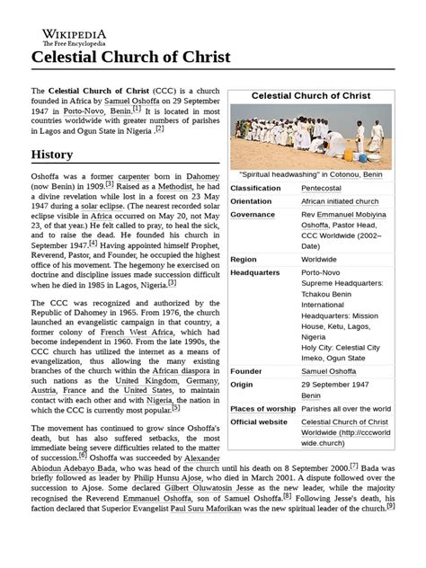 Let’s talk about the spread of the Celestial Church of Christ in Canada . It’s not just a small, niche group; the church has seen significant growth, especially with migration patterns bringing members from various parts of the world, particularly Africa, to Canada. Many Celestial Church parishes in Canada are vibrant hubs of activity, serving not only as places of worship but also as community centers for members. The initial establishment of the church in Canada often started with small prayer groups and gatherings, which, over time, evolved into formal parishes with dedicated buildings and organized leadership. This organic growth is a testament to the faith and dedication of its members. You’ll find these communities primarily in major urban centers where immigrant populations are more concentrated, such as Toronto, Montreal, Calgary, and Vancouver. These cities offer a diverse environment where religious groups can flourish. The church’s presence isn’t just about Sunday services; it’s about fostering a strong sense of community, providing spiritual guidance, and engaging in various social and charitable activities. When you visit a Celestial Church in Canada , you’ll likely experience the same core tenets and worship style you’d find anywhere else in the world, but with a unique Canadian flavor, reflecting the local culture and demographics. The leadership and members are often incredibly welcoming, eager to share their faith and extend the hand of fellowship. It’s this spirit of inclusivity and shared belief that strengthens the CCC community in Canada and encourages its continued growth and impact. The organization actively works to establish new parishes and support existing ones, ensuring that the spiritual needs of its members are met across the vast Canadian landscape. It’s truly inspiring to see how this global church has found a strong footing and continues to thrive in a new continent.