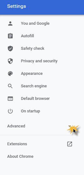 2. Navigate to Advanced Settings : In the settings menu, look for “Advanced” at the bottom of the left sidebar. Click on it to expand the advanced settings options. If you don’t see a left sidebar, you might need to scroll down to the very bottom of the page to find the “Advanced” option.