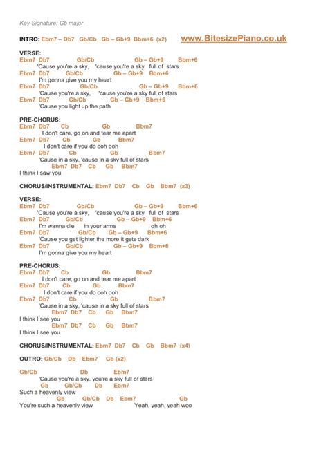 Alright, let’s get down to business and talk about the chords that make “A Sky Full of Stars” tick. This song, guys, is built on a foundation of relatively simple, yet incredibly powerful, chord progressions. Understanding these is your first major step to mastering the track. The key signature typically leans towards F# Major , which might sound a bit intimidating, but trust me, the chords used are quite common and lend themselves beautifully to the piano. You’ll find yourself frequently playing chords like F# major, C# major, B major, and G# minor. The magic happens in how these chords are arranged and repeated, creating that driving, euphoric feel. For instance, a common progression you’ll encounter is F# – C# – B – G#m . This sequence forms the core of many sections, including the verses and choruses, giving the song its undeniable momentum. When you play these chords, try to feel the movement and the emotional weight they carry. The F# chord often feels like a strong, stable starting point, while the C# provides a sense of lift and anticipation. The B major offers a moment of beautiful resolution before the G# minor introduces a touch of poignancy or a different emotional color. It’s this interplay between major and minor, between stability and movement, that makes the song so captivating. We’ll also look at variations and inversions, which can add even more richness to your playing. Don’t worry if you’re not super familiar with all these keys yet; we’ll touch upon how to find them and practice them. The goal here is to internalize this harmonic language so that it starts to feel second nature. Remember, practice makes perfect, and consistently playing these progressions will build muscle memory and familiarity. Think of these chords as the building blocks; once you’ve got them down, everything else will start to fall into place. We’re aiming for a sound that is both powerful and delicate, just like the original. So, let’s get those fingers moving and explore the harmonic landscape of “A Sky Full of Stars”!