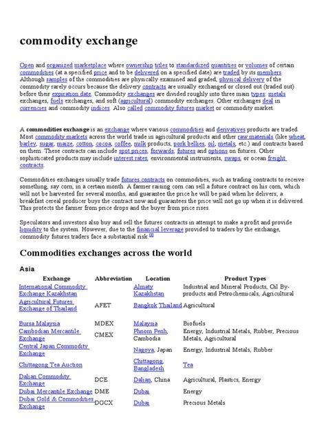 Hey guys, let’s dive into the fascinating world of commodity exchange ! Ever wondered where those raw materials like oil, gold, and wheat actually get traded? That’s where commodity exchanges come in. Think of them as bustling marketplaces, but instead of selling your grandma’s famous apple pie, they’re facilitating the buying and selling of essential goods that power our world. These exchanges are the backbone of global trade, ensuring that producers can sell their goods and consumers can access them reliably. Without them, the prices of pretty much everything you buy, from the gas in your car to the bread on your table, would be way more unpredictable. We’re talking about a system that’s been around for centuries, evolving from simple local trading posts to sophisticated global networks. The primary function of a commodity exchange is to provide a standardized and regulated platform for trading. This standardization is key; it means that a contract for, say, a certain grade of corn is the same no matter who is buying or selling it, or where in the world the transaction is happening. This reduces uncertainty and makes it easier for buyers and sellers to engage in trade. Furthermore, these exchanges play a crucial role in price discovery. The constant interaction of buyers and demand and sellers offering supply creates a real-time price for commodities, reflecting current market conditions, global events, and future expectations. This transparency in pricing is incredibly valuable for everyone involved, from farmers planning their next harvest to multinational corporations hedging their risks. So, understanding commodity exchange isn’t just for traders; it’s for anyone who wants to grasp how the global economy really works and why prices fluctuate the way they do. It’s all about supply and demand, folks, on a massive scale!