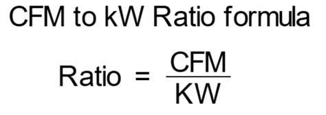 • Calculate the ratio (if needed): In this case, it’s directly given. Each 2 kW gives 2,000 CFM. That is a 1:1 ratio. This means for every kilowatt, the fan moves 1,000 CFM (2,000 CFM / 2 kW = 1,000 CFM/kW).