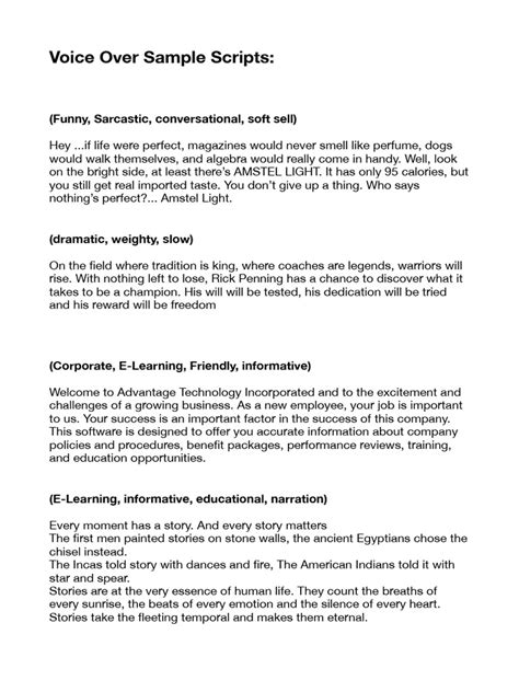 - Examples of Effective American Voice Over Scripts
