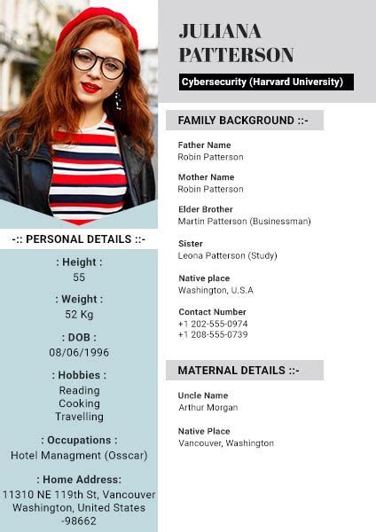 To make Sandy’s biodata stand out, I added some personal touches. This is where you can be creative and inject some personality! Consider including a personal quote or a brief statement that reflects her life’s philosophy or a motto she lives by. For instance, Sandy has always been a strong advocate for following your dreams. You could include a quote about pursuing passions. Include a photograph of her. Choose a high-quality picture that represents her. It could be a recent photo or one that captures her personality. It’s really helpful. If she has any special achievements or awards, be sure to highlight them. This could be anything from academic honors to volunteer work or community involvement. I tried to focus on things that show who she is. This makes the biodata more personal. Think about her style. Does she love elegant design, or does she prefer a more relaxed approach? Keep this in mind when choosing the overall design and layout. Adding personal touches transforms the biodata from a simple document to a heartfelt tribute. It makes it unique and memorable.