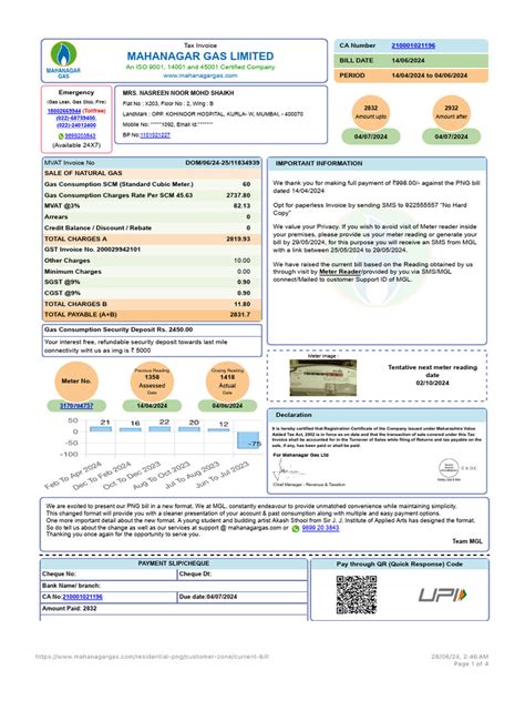 Additionally, most bills will display the rate at which gas is being charged, usually per SCM. This rate can vary based on the type of gas service you have (e.g., domestic, commercial) and any government-mandated price adjustments. Understanding this rate helps you calculate your total gas consumption charges. Some Mahanagar Gas Bills also show the previous bill amount , the payment made, and any outstanding balance from previous billing cycles. This gives you a clear overview of your payment history and any amount that you might owe. Often, you will see a breakdown of the charges including detailed information on the different components of your bill. This breakdown can help you identify any specific charges you are curious about. This could be helpful when you are budgeting. Knowing all of these points are essential to help you monitor and understand your gas consumption and manage your expenses effectively.