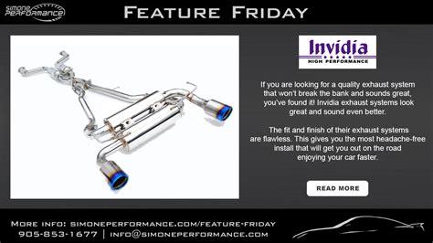 4. Read Reviews and Watch Videos: See what other customers are saying about different Invidia exhaust systems. Check out videos of the exhaust systems installed on your car to get an idea of the sound. This can help you get the best performance for your money.