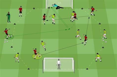 - Schussübungen (15 Minuten): Schießen auf das Tor, Schießen nach Zuspiel.