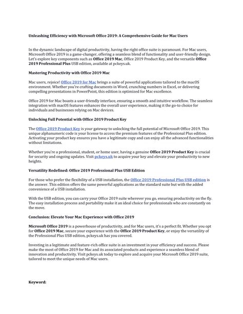 So, you’ve decided to buy Microsoft Office 2019 for Mac . Now what? The download and installation process is pretty straightforward, but let’s walk through it. First, you’ll need to go to the Microsoft website or the retailer where you bought the software. Locate the download link. This is usually in your account or the order confirmation email. Once you’ve found the download, click the link, and the installer file will begin to download. After the download is complete, open the installer file. Follow the on-screen prompts. This typically involves agreeing to the license terms and choosing where you want to install the software. During the installation, you’ll likely be asked to enter your product key. This is the unique code that proves you own a valid license. You’ll find the product key in your purchase confirmation email or on the product packaging if you bought a physical copy. After you enter the product key, the installation process continues. The time it takes will vary depending on your internet speed and the speed of your Mac. Once the installation is complete, you can open the Office applications (Word, Excel, PowerPoint, Outlook) from your Applications folder or Launchpad. You’ll be prompted to activate the software. This usually involves signing in with your Microsoft account. And that’s it! You’re ready to start using Office 2019 on your Mac. If you’re looking for how to download MS Office 2019 Mac , this section is your guide. The process is similar whether you buy Microsoft Office 2019 for Mac from the Microsoft Store or another retailer. This makes sure that your installation goes smoothly, and you can start using the software as soon as possible.