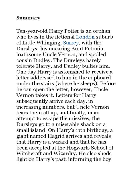 Harry Potter is a series of fantasy novels by J.K. Rowling that has captured the imaginations of millions worldwide. These books chronicle the life of a young wizard, Harry Potter, and his adventures at Hogwarts School of Witchcraft and Wizardry, as he battles the dark wizard Lord Voldemort. The series is renowned for its intricate plot, well-developed characters, and exploration of themes such as love, friendship, loss, and courage. From the moment Harry discovers he’s a wizard to his final confrontation with Voldemort, the journey is packed with wonder, danger, and profound personal growth. Whether you’re a longtime fan or new to the wizarding world, a summary of the Harry Potter books offers a glimpse into a truly enchanting narrative.