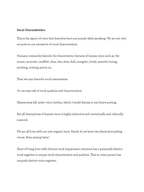 • Focus on the Impact: Describe the effect the voice has on the listener. Does it calm them? Does it intimidate them? For example: “His voice commanded attention.”