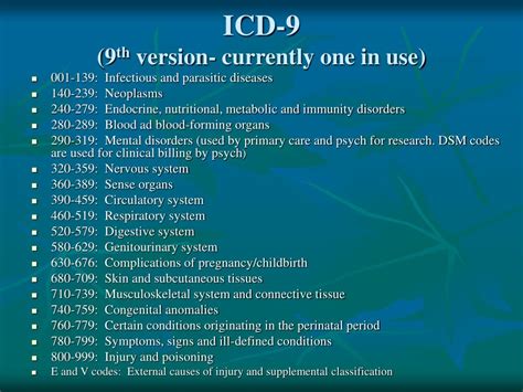 ICD-9 codes are structured in a specific way. Most codes are three to five digits long. The first digit can be numeric (1-9) or start with the letter ‘V’ or ‘E.’ The first two digits usually indicate the main category of the disease or condition. The digits after the decimal point provide more specific details. Let’s break down each component to give you a clearer picture. The first digit of an ICD-9 code is like the first chapter of a book, setting the stage for what’s to come. Whether it’s a number from 1 to 9 or a letter like ‘V’ or ‘E,’ it immediately gives you a sense of the broad category you’re dealing with. Numbers typically refer to diseases, while ‘V’ codes often indicate health services or encounters for specific purposes, such as vaccinations or check-ups. ‘E’ codes, on the other hand, usually point to external causes of injury or poisoning, providing information about how the injury occurred. The second digit further refines this initial categorization, narrowing down the focus to a more specific group of conditions. Together, the first two digits act as a roadmap, guiding you towards the relevant section of the ICD-9 code manual. Now, let’s talk about the decimal point. This little dot is like a gateway to greater detail. The digits that follow the decimal point provide even more specific information about the disease or condition. They might indicate the location of the problem, the severity of the condition, or any associated complications. For example, if you’re dealing with a respiratory infection, the digits after the decimal point could specify whether it’s pneumonia, bronchitis, or another type of infection. They might also indicate whether the infection is acute or chronic, and whether it’s caused by a specific organism. By paying attention to these details, healthcare professionals can paint a much more accurate picture of the patient’s condition, leading to more effective treatment and better outcomes. In summary, ICD-9 codes are like a well-organized library, with each digit and decimal point acting as a signpost guiding you to the precise information you need. By understanding the structure of these codes, you can unlock a wealth of medical knowledge and communicate more effectively with healthcare providers.
