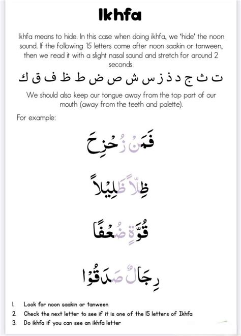 Alright guys, now that we’ve got a handle on the basic Ikhfa Tajweed meaning , let’s get into the nitty-gritty: which letters trigger this rule? This is where things get specific, and it’s super important to know these letters. Basically, when you encounter a ‘noon saakinah’ (نْ) or ‘tanween’ (ً ٌ ٍ) in the Quran, and the very next letter is one of the following 15 letters, then you apply Ikhfa. These 15 letters are divided into three groups based on their articulation point and strength, which affects how you apply Ikhfa. But for now, let’s just list them out so you can start recognizing them. The 15 letters are: ق (Qaaf), ف (Faa), ط (Taa), د (Daal), ت (Taa), ض (Dhaad), ذ (Dhaal), ث (Thaa), ج (Jeem), ش (Sheen), س (Seen), ك (Kaaf), ز (Zaay), ظ (Thaa - emphatic), ص (Saad) . Memorizing these can seem like a challenge at first, but trust me, as you read the Quran more, you’ll start spotting them naturally. Many scholars group these 15 letters into three categories to help with understanding the degree of Ikhfa, which we’ll touch upon later. These categories are: Group 1 (Strong letters) , Group 2 (Middle letters) , and Group 3 (Weak letters) . The classification is based on the strength of the letter’s articulation point and its characteristics. For example, the letters ‘ط’, ‘ص’, ‘د’, ‘ض’, ‘ظ’, ‘ت’ are considered strong and emphatic, and when they follow ‘noon saakinah’ or tanween, the Ikhfa is applied with more emphasis on the nasalization. On the other hand, letters like ‘ج’, ‘ش’, ‘س’, ‘ز’, ‘ك’, ‘ق’, ‘ف’, ‘ث’, ‘ت’, ‘ذ’ require a lighter touch. Understanding this grouping helps reciters to apply Ikhfa with the correct nuance, making the recitation sound more authentic and beautiful. However, the most crucial step is identifying the letters themselves. You can find charts and lists online or in Tajweed books that clearly outline these 15 letters. Many people find it helpful to associate these letters with certain words or phrases to aid memorization. For instance, some traditional poems group these letters into specific words, making them easier to recall. The key takeaway here is that Ikhfa Tajweed meaning directly translates to applying a hidden nasal sound when ‘noon saakinah’ or tanween precedes any of these 15 specific Arabic letters. Recognizing these letters is the first major step in correctly implementing this rule in your Quranic recitation, transforming your sound and making it more melodious. It’s all about precision and flow, guys. Don’t get discouraged if it takes time; consistent practice is your best friend here.