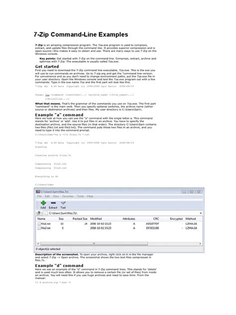 The 7-Zip command line offers a plethora of advanced options to fine-tune your archiving and extraction processes. Let’s explore some of the most useful ones.