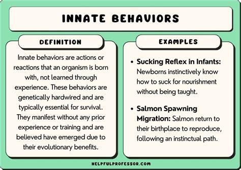 So, what’s the big difference between instincts and learned behaviors? Instincts are innate , meaning we’re born with them. They don’t require any prior experience or learning. Learned behaviors, on the other hand, are acquired through experience and practice. They can be modified and adapted based on our interactions with the environment.