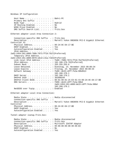 Let’s break down what you’ll typically see when you run ipconfig /all . First off, you’ll notice it lists each network adapter separately. You might see your Ethernet adapter (if you’re plugged into a router with a cable), your Wi-Fi adapter (if you’re connected wirelessly), and potentially others like PPP adapters or the dreaded “Media disconnected” entries. For each active adapter, you’ll get a whole bunch of info. The IP Address is the unique identifier for your device on the network. The Subnet Mask defines the boundaries of your local network. The Default Gateway is the router that connects your local network to the outside world (the internet). DNS Servers are like the internet’s phone book, translating domain names (like google.com) into IP addresses. The DHCP Server is usually your router, which automatically assigns IP addresses to devices on your network. The Lease Obtained and Lease Expires times tell you how long your current IP address is valid. And finally, the Physical Address , commonly known as the MAC address, is a unique hardware identifier burned into your network card. Understanding these components is the first step to becoming a network guru, guys! It’s all about understanding how your computer talks to other devices and the internet.
