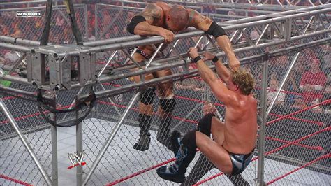 Okay, guys, let’s get to the good stuff : the steel cage match! When Jericho and Batista stepped inside that unforgiving structure, you knew it was going to be a war . Steel cage matches are designed to be brutal, to contain the chaos, and to force competitors to face each other head-on. This match delivered on all fronts. From the opening bell, the intensity was off the charts. Jericho, despite being the smaller competitor, used his agility and technical prowess to evade Batista’s initial onslaught. He bounced off the cage, used it to his advantage, and tried to wear down the Animal with a series of calculated attacks. But Batista, being the powerhouse that he was, absorbed the punishment and retaliated with devastating force. Clotheslines, slams, and powerbombs echoed through the arena as Batista relentlessly targeted Jericho’s body. There were moments where it looked like Jericho might actually escape, scaling the cage with desperation, only to be dragged back down by Batista’s brute strength. The crowd was on the edge of their seats, roaring with every near fall and close call.