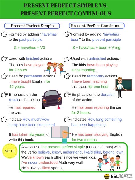 Alright, let’s turn our attention to the Present Perfect Continuous . This tense is all about ongoing actions that began in the past and are either still continuing in the present or have just stopped, but their effects are clearly visible now . The key idea here, guys, is the duration or the process of an action, and its connection to the current moment. While the Present Perfect (simple) can also describe actions continuing up to now, the Continuous form emphasizes the activity itself and how long it has been happening. For instance, if you say “I have been studying for three hours,” you’re highlighting the ongoing process of studying and its duration. You’re probably still studying, or you’ve just finished and you’re exhausted! This contrasts with “I have studied three chapters,” which focuses on the completed result (three chapters read), not the ongoing action. One primary use of the Present Perfect Continuous is for actions that started in the past and are still ongoing. You’ll often see this with for and since , just like the Present Perfect Simple. For example, “It has been raining all morning” means the rain started hours ago and it’s still raining now. “They have been working on this project since January” emphasizes the continuous effort from January right up to today. Secondly, we use it for actions that have just finished , but their consequences or evidence are visible or felt in the present. Imagine seeing someone looking tired and saying, “You look exhausted! What have you been doing ?” The assumption is that the tiring activity just stopped, and its effects are clear. Another example: “The ground is wet because it has been raining .” The rain itself might have stopped moments ago, but the wet ground is the present result of that recent, continuous action. The formation of the Present Perfect Continuous is have/has + been + verb-ing (the present participle). So, for example, “I have been waiting ,” “She has been sleeping ,” “They have been talking .” It’s quite a mouthful, but once you get the hang of it, it flows naturally. Questions are formed by Have/Has + subject + been + verb-ing (e.g., “ Have you been exercising lately?”), and negatives by haven't/hasn't + been + verb-ing (e.g., “I haven’t been feeling very well”). A common pitfall is using the Continuous form with state verbs (verbs that describe a state rather than an action, like know , love , understand , believe , have (for possession), be ). You generally don’t use these in continuous forms. You wouldn’t say “I have been knowing him for years”; instead, you’d use the Present Perfect Simple: “I have known him for years.” Another mistake is forgetting the been part – it’s crucial! The Present Perfect Continuous paints a vivid picture of ongoing processes and their immediate impact, making your English more dynamic and precise. It’s truly excellent for describing situations that are developing or have a strong sense of recent activity, adding a layer of detail that other tenses can’t quite capture. Mastering this tense will allow you to articulate nuanced situations, from explaining why you’re tired to describing how long a situation has been unfolding, ensuring your communication is always clear and perfectly timed.