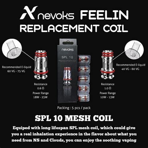 When you look at the Nevoks OCC coils themselves, you’ll often find them categorized by resistance. For example, you might see coils like the SPL-10 Mesh Coil (0.4 ohm, 0.6 ohm, 1.0 ohm) , which are widely compatible with several Nevoks devices, including the Feelin, Feelin C1, and Feelin A1. It’s these specific coil designations that you need to pay attention to. The Nevoks ARIA 40W kit, for example, uses a specific type of pod that is designed to house these interchangeable coils. It’s important to check the specifications of your Nevoks device. Usually, the user manual or the product description on the retailer’s website will clearly state which OCC pod or coil series is compatible. Don’t just assume! Look for model numbers and coil names.