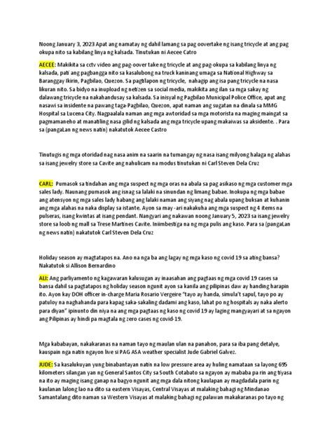 Onews: Tagalog Intro Script For Screen Reporters