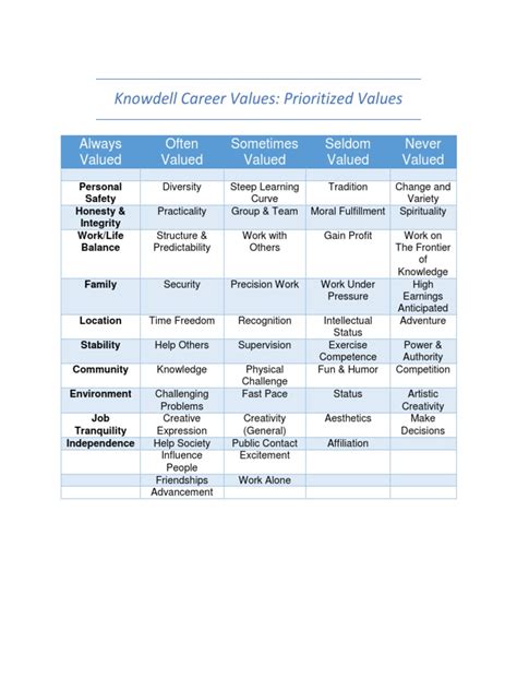 Alright, let’s talk about the perks! The Knowdell Card Sort offers a bunch of awesome benefits. Firstly, it gives you clarity . You get a crystal-clear understanding of what you value most in a career. No more guessing or second-guessing – you’ll know exactly what to look for in a job. Secondly, it boosts your confidence . When you’re making career decisions based on your values, you feel more sure of yourself and your choices. It’s like having a solid foundation to stand on. Thirdly, it enhances your job satisfaction . When your work aligns with your values, you’re more likely to be happy and fulfilled. It’s like finding a job that fits you like a glove. The Knowdell Card Sort can also help you identify potential career paths that you may not have considered before. By understanding your values, you can explore different industries, roles, and organizations that align with what you care about most. It’s like opening up a whole new world of possibilities. Moreover, the Knowdell Card Sort can improve your communication with employers and colleagues. When you know your values, you can articulate what you’re looking for in a job and what motivates you at work. It’s like having a clear message to convey. Finally, the Knowdell Card Sort can help you make better career decisions overall. Whether you’re choosing a major in college, considering a job offer, or thinking about a career change, your values can guide you towards the right path. It’s like having a compass that always points you in the right direction.