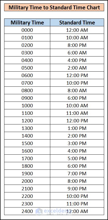 To make things even easier, let’s create a handy conversion chart. This way, you can quickly reference it whenever you need to translate military time to standard time or vice versa. Here’s a simplified version to get you started: