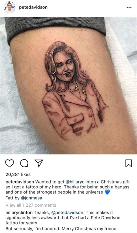 Hey guys, let’s dive into something super interesting and a little bit quirky: Pete Davidson’s tattoo of Hillary Clinton . Yep, you heard that right! The comedian and actor, known for his love of body art, sports a tattoo of the former First Lady and Secretary of State. This isn’t just some random doodle, though. It’s a pretty bold statement, and it’s sparked a lot of curiosity and conversation. We’re going to break down why this tattoo exists, what it might mean, and how it fits into Pete’s overall tattoo collection. Buckle up, because we’re about to get ink-deep into this story!