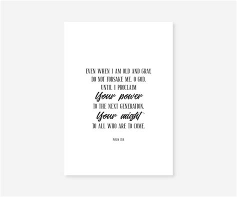 Alright, let’s take a look at the verse itself. Psalm 71:18 reads: “ So even to old age and gray hairs, O God, do not forsake me, until I proclaim your might to another generation, your power to all those to come. ” This is a prayer, a plea for God’s continued presence and support. The psalmist is expressing a deep-seated desire to continue praising God and sharing His glory, even as they grow older. It’s a poignant expression of faith and dependence on God’s unwavering faithfulness. The language is direct and heartfelt, reflecting the psalmist’s vulnerability and reliance on God’s grace. It’s a reminder that God’s love and care extend throughout all stages of life, from youth to old age. The use of “old age and gray hairs” is particularly significant, as it symbolizes the natural decline of physical strength and the approach of the final years of life. The plea “do not forsake me” is a powerful expression of trust and reliance on God’s constant presence. The psalmist understands that even as they age, they have a purpose: to proclaim God’s might and power to future generations. This verse encapsulates the essence of faith and the enduring nature of God’s covenant with His people. The emphasis on proclaiming God’s greatness to “another generation” underscores the importance of passing on faith and spiritual heritage to those who follow. It’s a testament to the belief that the experience of God’s faithfulness can be shared and passed down through generations. The verse is more than just a personal prayer; it’s an affirmation of God’s enduring presence and an encouragement to continue praising Him, no matter our circumstances.