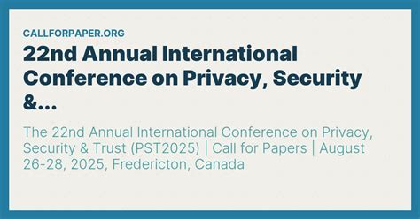 Hey everyone! Get ready to mark your calendars because the 22nd annual International Conference on Privacy, Security, and Trust (PST) is coming your way in 2025! This is the place to be if you’re passionate about the ever-evolving landscape of privacy, security, and trust in our increasingly digital world. We’re talking about cutting-edge research, groundbreaking ideas, and the kind of discussions that shape the future. Whether you’re a seasoned researcher, a budding cybersecurity expert, an industry professional, or just someone who cares deeply about these critical issues, PST 2025 is where you’ll want to be. It’s not just another conference; it’s a vibrant hub for innovation, collaboration, and the exchange of knowledge that’s essential for navigating the complexities of modern technology and its impact on our lives. We’re gearing up for an incredible event filled with insightful keynotes, in-depth technical sessions, interactive workshops, and unparalleled networking opportunities. This year’s conference promises to dive deep into the most pressing challenges and emerging trends, offering a platform for diverse perspectives and fostering a truly collaborative environment. So, get ready to engage, learn, and contribute to the conversations that matter most.