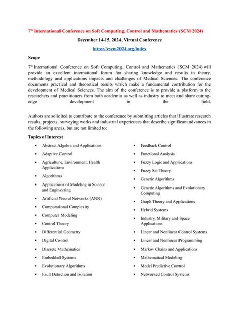 Hey guys, get ready to dive into the cutting edge of technology because the 27th International Conference on Soft Computing and Measurements (SCM 2024) is just around the corner! This isn’t just another conference; it’s the place to be if you’re passionate about the incredible advancements happening in soft computing and its applications in measurements. We’re talking about a melting pot of brilliant minds – researchers, engineers, and innovators from all over the globe – all coming together to share their latest discoveries, challenges, and future visions. Whether you’re deep into fuzzy logic, neural networks, evolutionary computation, or any of the myriad branches of soft computing, or if you’re focused on precision measurement, sensor technologies, or data analysis, SCM 2024 is your jam. It’s an unparalleled opportunity to network, collaborate, and get inspired by the groundbreaking work shaping our technological landscape. Prepare yourselves for insightful keynote speeches, interactive workshops, and a plethora of research paper presentations that will undoubtedly push the boundaries of what we thought was possible. This event is crucial for anyone looking to stay ahead of the curve in these rapidly evolving fields. So, mark your calendars and get ready to be amazed by the sheer ingenuity and progress showcased at SCM 2024!