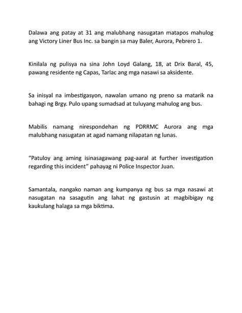 Tagalog News Report Example for Students
