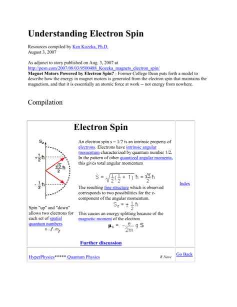 Moreover, the spin quantum number plays a significant role in spectroscopic techniques such as Electron Spin Resonance (ESR) or Electron Paramagnetic Resonance (EPR). These techniques exploit the magnetic properties of unpaired electrons to study the structure and dynamics of molecules and materials. The interaction of electron spin with an external magnetic field provides valuable information about the local environment of the electron.