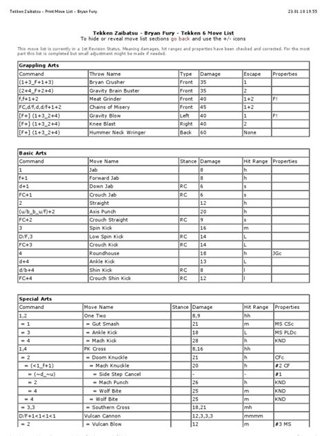 Unlocking Character-Specific Strategies with the Tekken 4 Move List