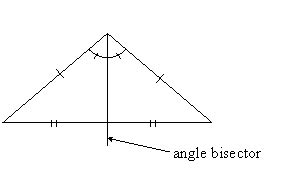 So, we’ve shown that if the angle bisector of the vertical angle of a triangle also bisects the base, then the triangle must be isosceles. This is a pretty neat result, and it has some important implications. Remember, an isosceles triangle has two equal sides and two equal angles (the angles opposite the equal sides).