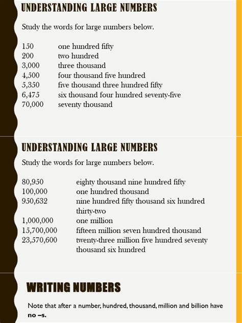 Furthermore, comprehending large numbers enhances your overall numerical literacy. It’s not just about knowing how to read and write numbers; it’s about understanding their magnitude and significance. This includes being able to compare large numbers, estimate their relative sizes, and perform basic calculations with them. Numerical literacy is a crucial skill in both personal and professional contexts. Whether you’re managing your finances, evaluating investment opportunities, or interpreting scientific data, a solid understanding of large numbers will give you a significant advantage. In short, mastering large numbers is an investment in your ability to navigate and succeed in an increasingly data-driven world.