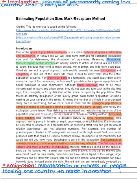 These assumptions highlight the importance of careful study design and execution. To improve the accuracy of the population estimates, researchers often take steps to minimize the potential violations of these assumptions. This may involve using appropriate marking techniques, selecting suitable trapping or sampling methods, and designing the study to be as short as possible to minimize the impact of births, deaths, immigration, and emigration. Additionally, researchers may also conduct additional analyses or use alternative methods to account for the potential biases caused by violations of these assumptions. Understanding these assumptions is critical to ensuring the reliability of population estimates generated by the mark-recapture method . They provide a framework for evaluating the validity of the results and assessing the extent to which they reflect the true population size.
