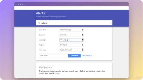 • Customize Your Settings: Before you create the alert, click “Show options.” Here, you can customize the frequency, sources, region, and language just like with existing alerts.
