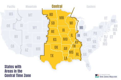 • Nickname: Central Time is sometimes called the “Heartland Time” because it covers a large area in the middle of the United States.