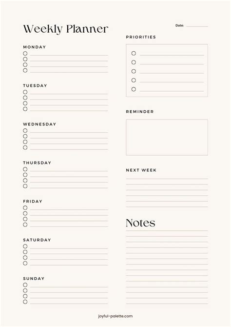 • Printable Templates: You can find tons of free and paid printable weekly planner templates online. Simply download the template, print it out, and start planning.